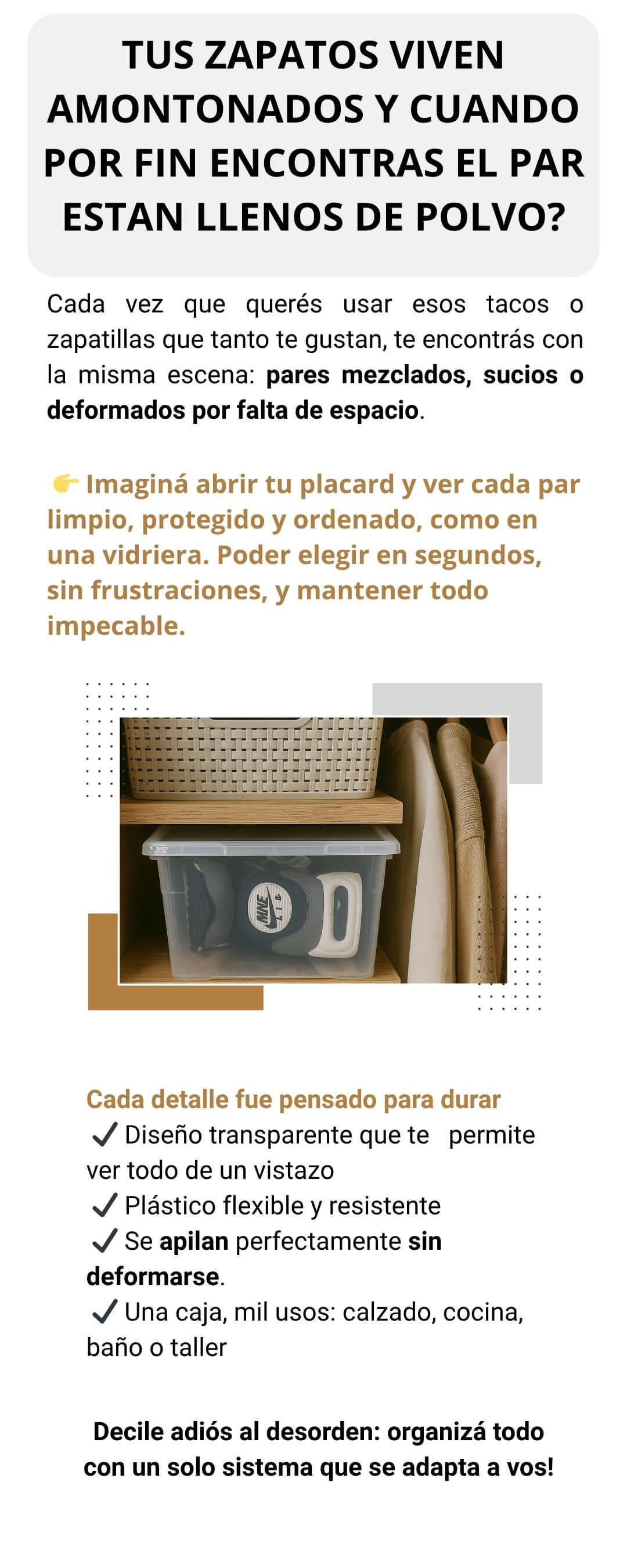 Caja Organizadora Zapato Plástico Con Tapa 10 lts Alta